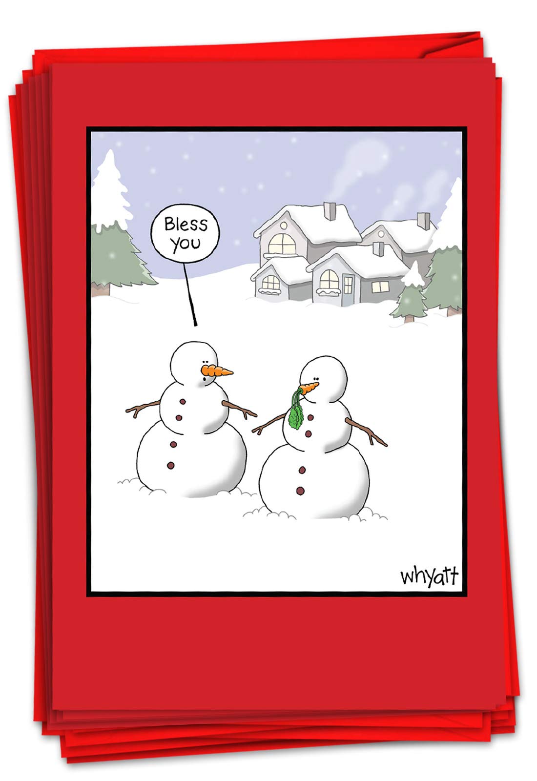 Amazon Com Nobleworks 12 Funny Christmas Greeting Cards With Cartoons Comic Boxed Set Humor Xmas Notecards 1 Design 12 Cards Snowman Sneeze B2491xsg Office Products